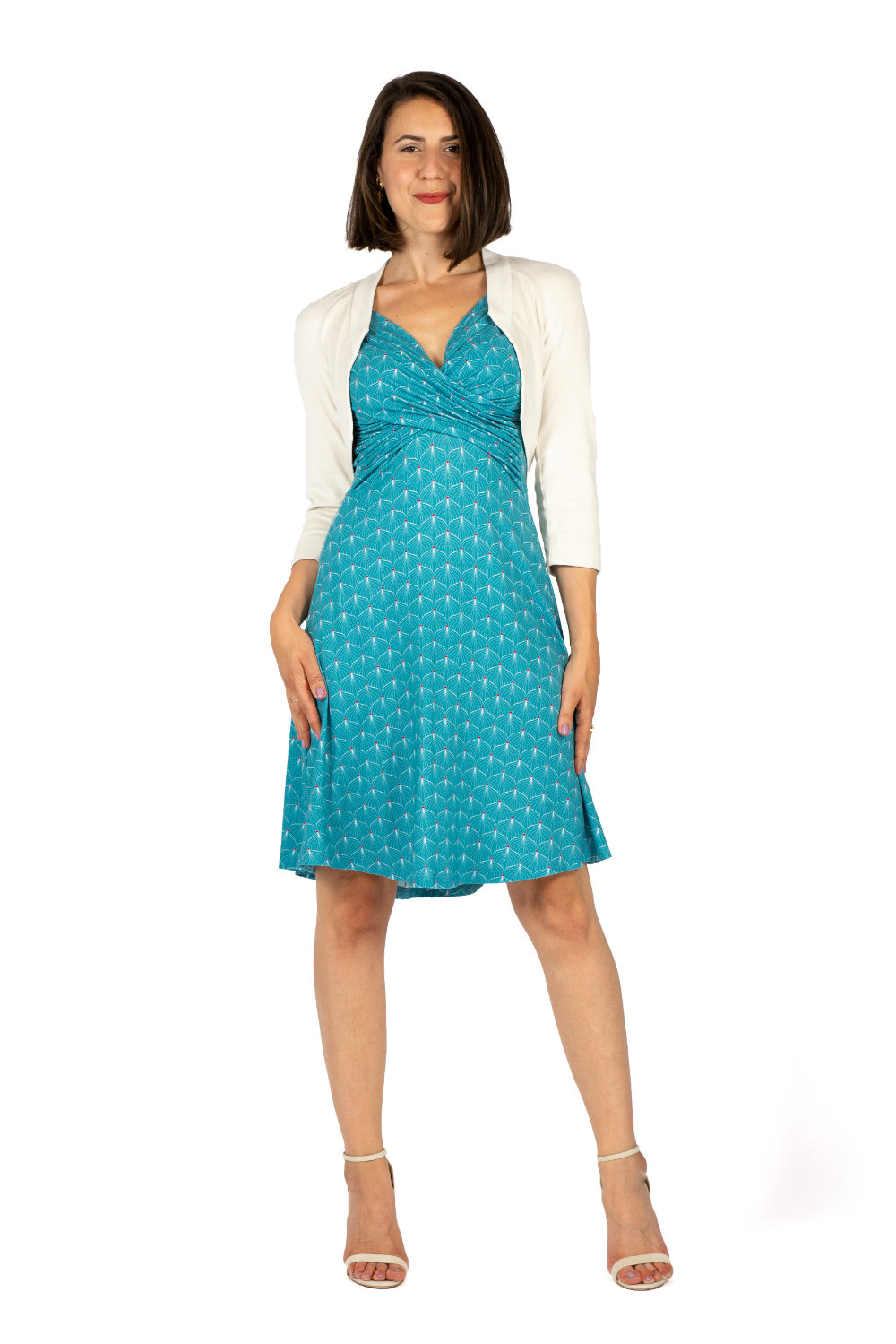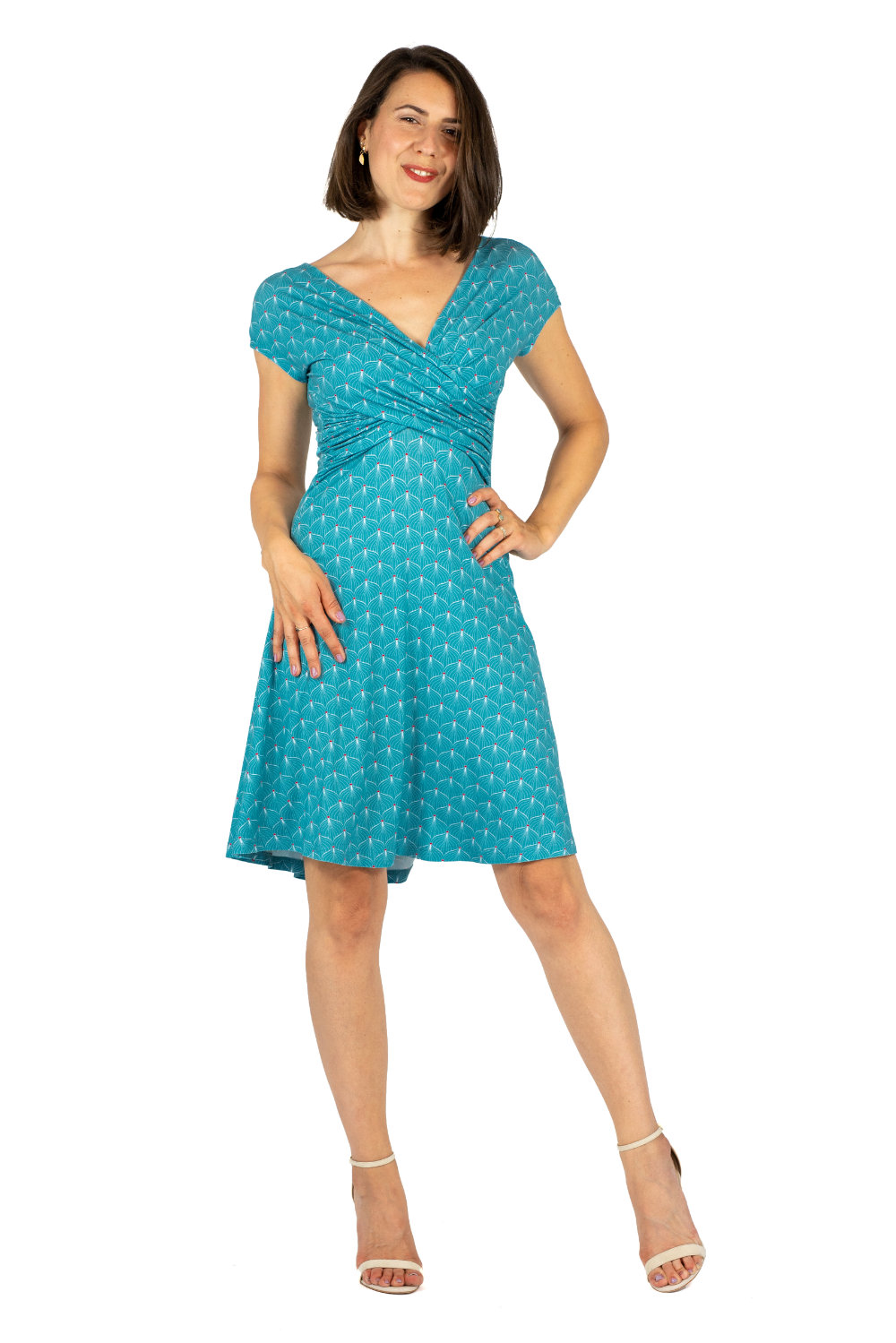 Unser Kleid FELICA ist elegant und alltagstauglich gleichermaßen. Der Wickeleffekt im Vorderteil zaubert eine tolle Taille.