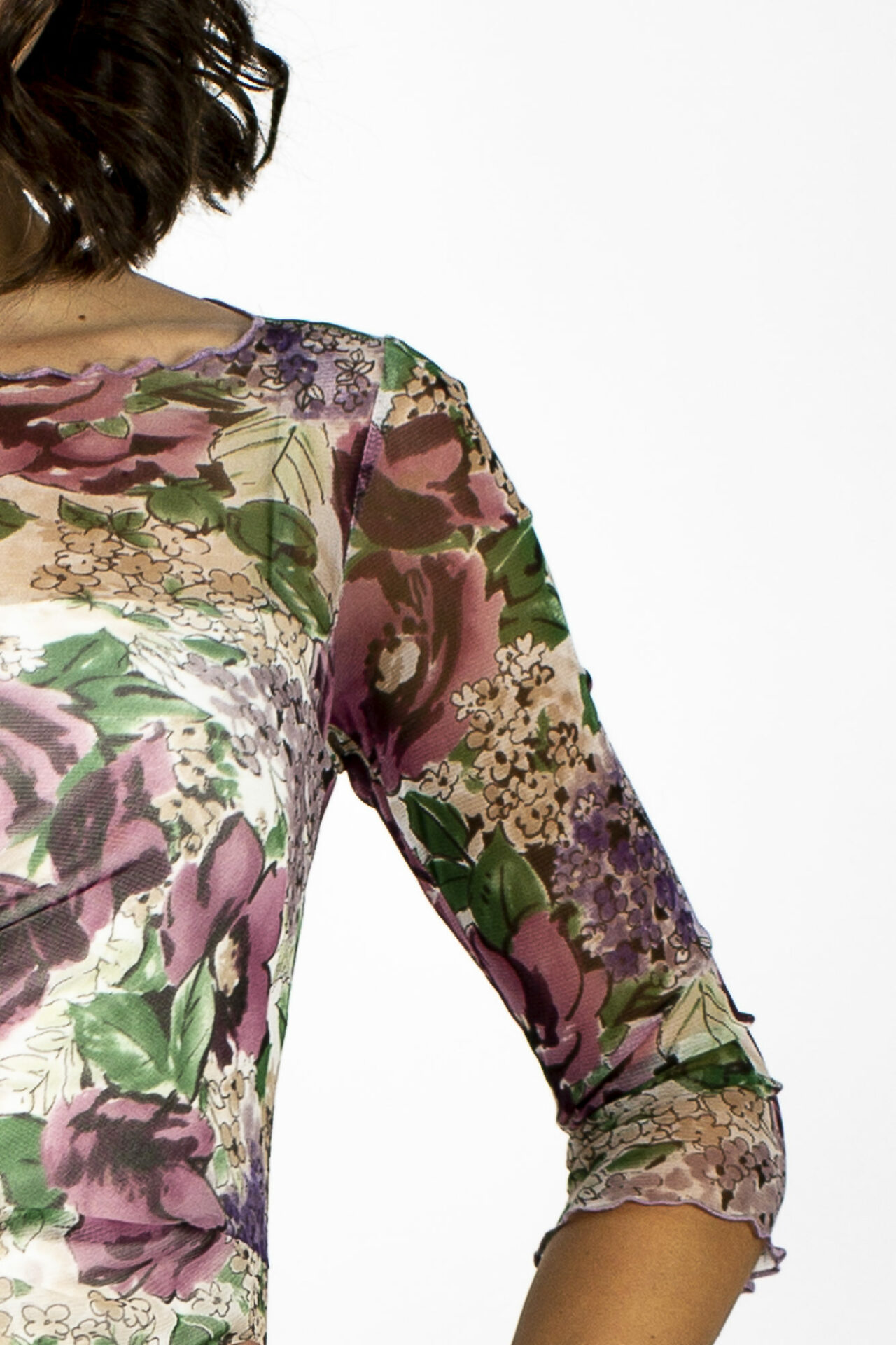 Gloria ist ein gefüttertes Meshkleid. Mesh ist ein transparentes Tüllmaterial, welches sich ganz zart auf die Haut legt. Durch die Teilfütterung sind Ärmel und Dekolleté leicht durchsichtig und kommen besonders zur Geltung. Abgerundet werden die Abschlüsse durch einen verspielten Rollsaum und greift nocheinmal die Zartheit des Materials auf. Das Kleid hat einen U-Boot Ausschnitt, einen 3/4 Arm und ist knieumspielend.