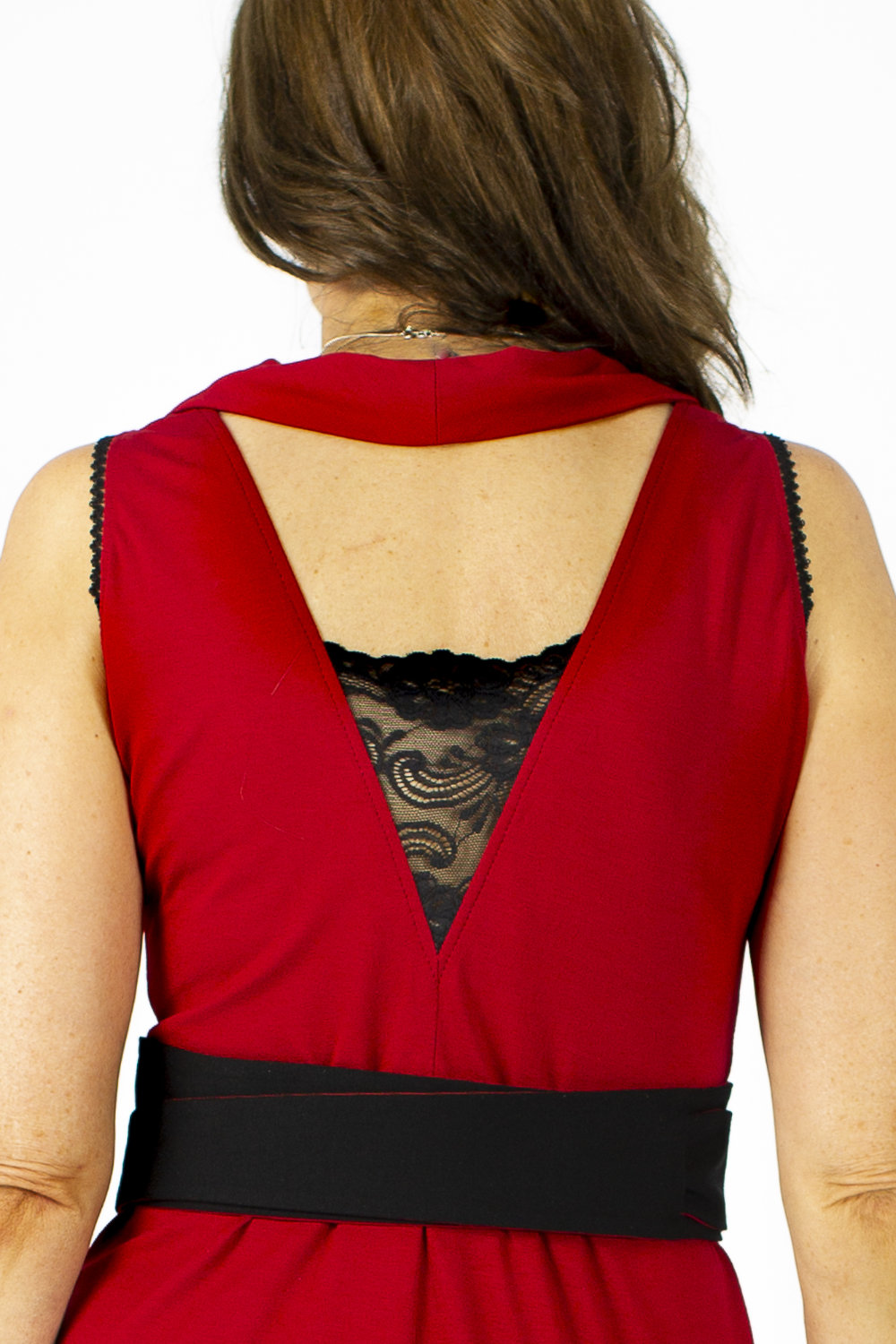 - Bindegürtel zum Wenden (zweifarbig). In der gleich Farbe wie das Kleid ist es eine unauffällige Variante. Die Gürtelenden zeigen nur den Kontrast.