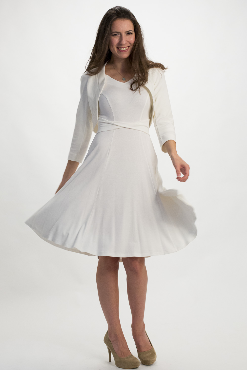 Der Bolero NELE ist wunderbar mit schmalen Jersey-Kleidern kombinierbar und kreiert durch seine schlichte Eleganz ein stilvolles Outfit.