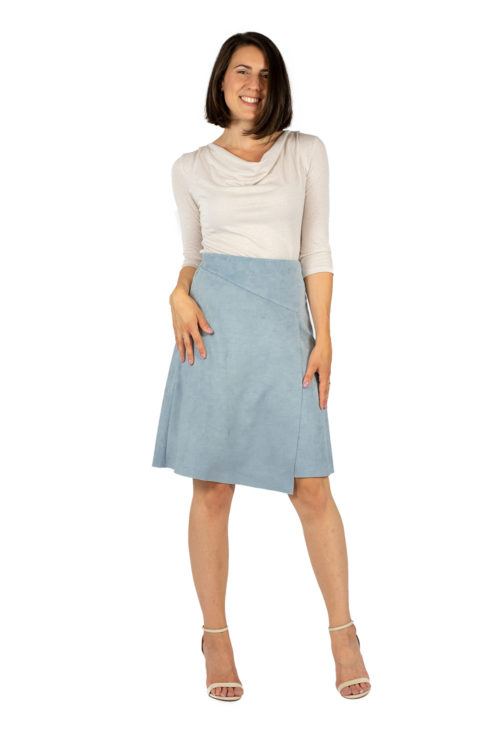Die vordere Kante endet im Nacken in einem kleinen Stehkragen. Es gibt zwei formgebende Nähte im Rücken welche die Passform optimieren.