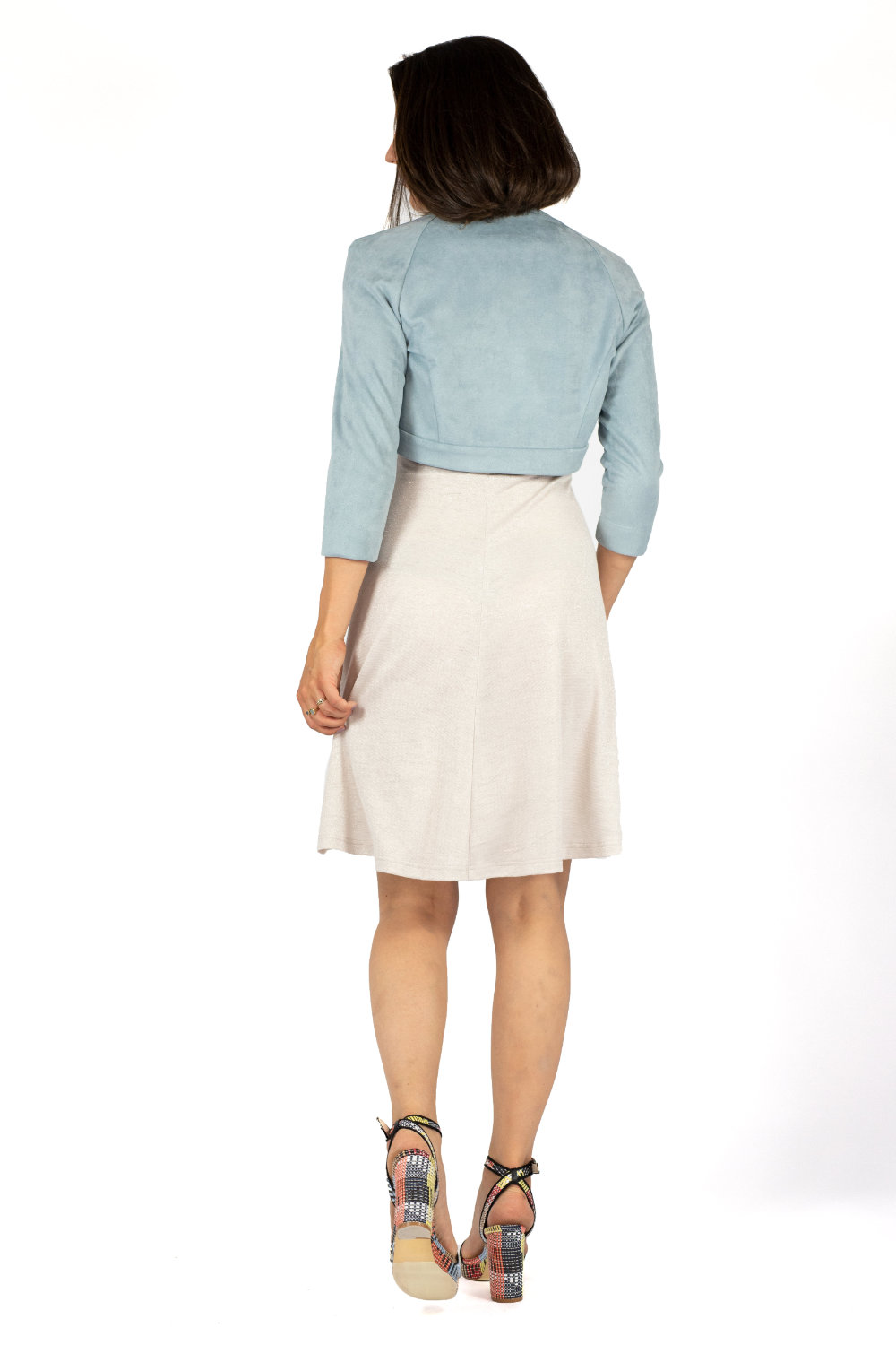 Der Bolero NELE ist wunderbar mit schmalen Jersey-Kleidern kombinierbar und kreiert durch seine schlichte Eleganz ein stilvolles Outfit.