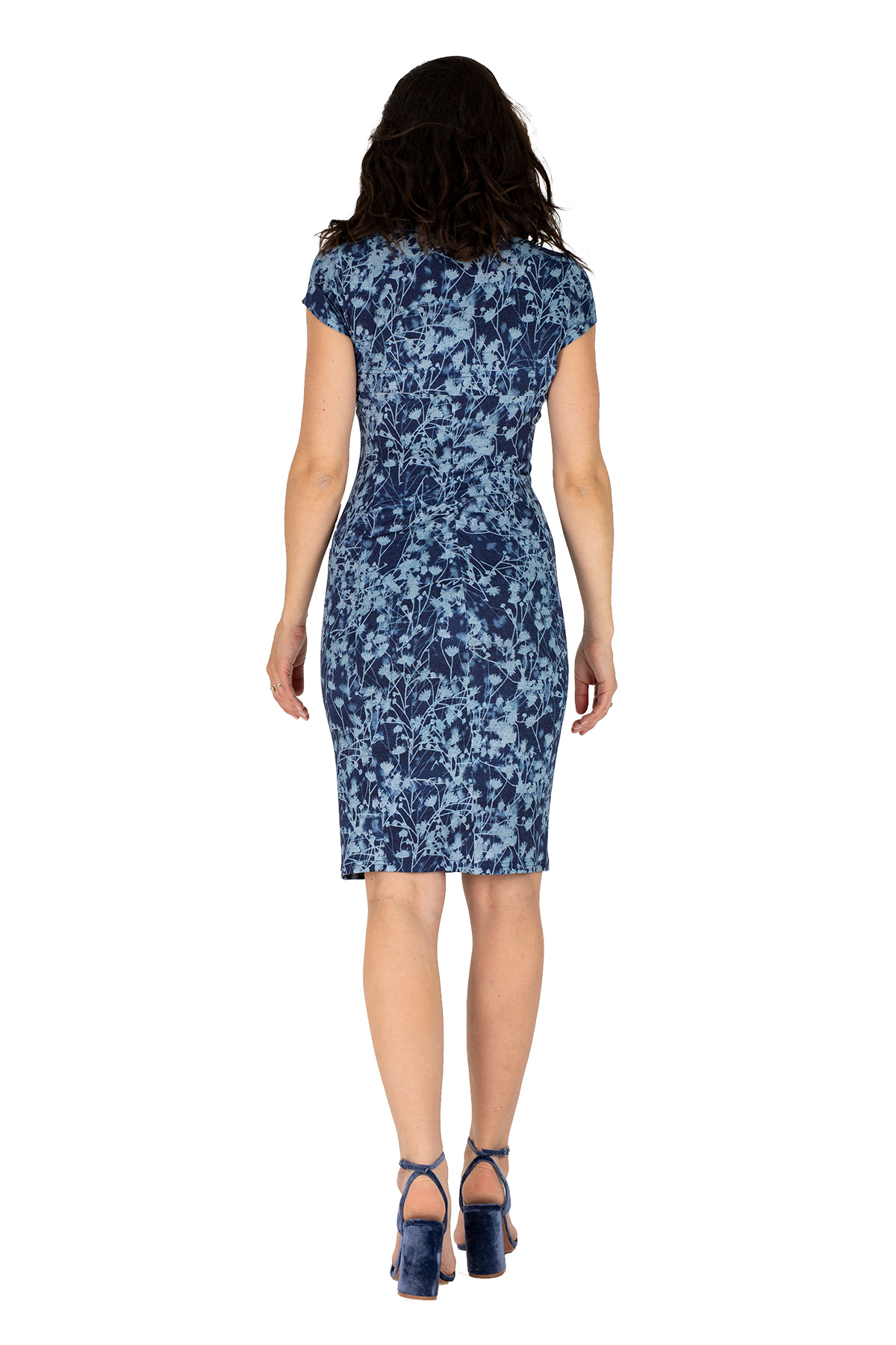 Das Kleid hat einen sommerlichen Kurzarm.